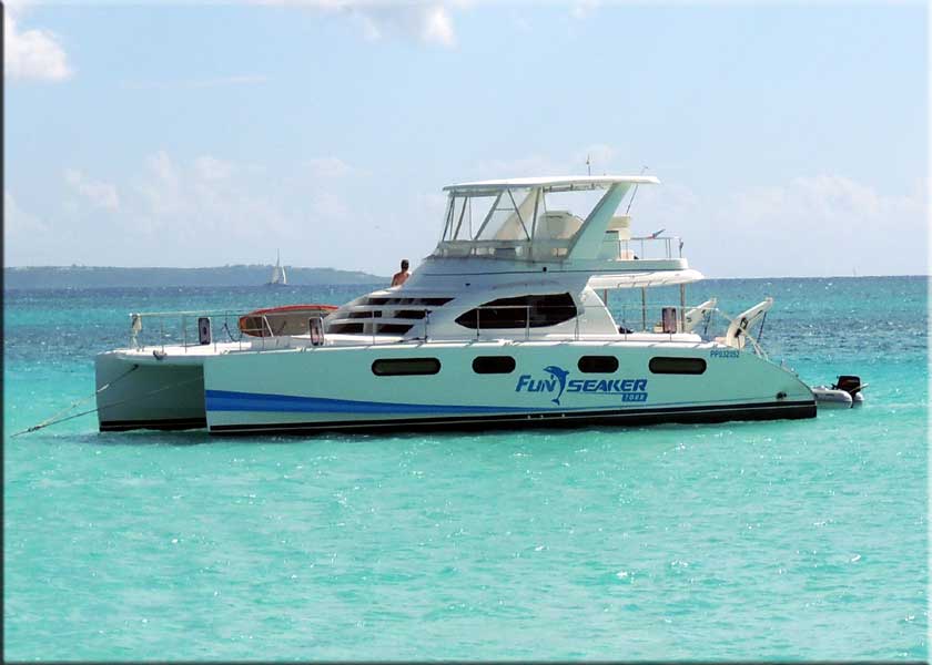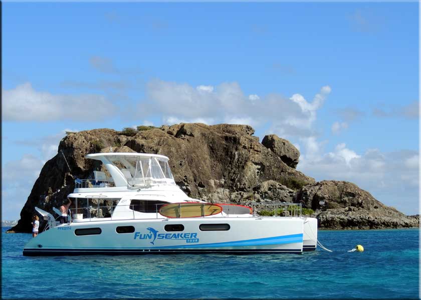 Créole Rock has the best snorkeling on St Martin featuring sea turtles, barracuda, tangs, puffers, moray eels, lobsters, starfish, trunkfish, and more. Funseaker starts in Anse Marcel, stops at Creole Rock to take on more passengers and a bit of snorkeling before a trip to Tintamarre and on to Rendezvous Bay in Anguilla for a great lunch and a great lounge. Funseaker leaves Anse Marcel at 8:15AM, a long drive and an early start for those of us on the other side of the island. We opted for a 9:15 pickup at Grand Case. |