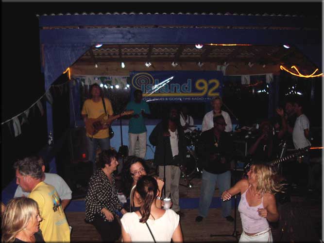 | Changes: Ironhorse/Coconut Joe's/whatever is now for sale. Perroquet became Breezin' for a few moments and is now Fathoms Tavern. It has been bought by a group that owns a marina in Florida. They have opened up the floorplan, focusing more on the lovely lagoon waterfront and repainted. A dinghy dock with a stage was put out into the lagoon. Greg, the chef at SkipJack's last year, has come over here with most of his previous menu and several additions in the appetizer department. They had a benefit for Austin and Christina on Wednesday night. They were the couple who were hit by a van in front of the restaurant around New Year's. He is still in the hospital, but recovering. Several bands, or at least several musicians from several bands, were jamming away when we got there at about 11PM. It looked like a good time was had by all and it certainly was for a good cause. this is the band, One White Chick. The chick in this case is the one on the stage with the sax, not the blonde in front with the ... |