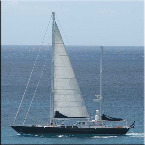 Weather: Sunday started out overcast but turned into a great day with few clouds and lots of blue sky. Monday was even better and I'd like to tell you that I took my sailboat out, but this beautiful boat merely sailed past our condo as we were on the deck having lunch. Saba should have been in the distance, so there is still a lot of haze on the water, but it was a warm and sunny day with a bit of wind. Wendy K was leaving the beach as we walked up to Cupecoy on Monday afternoon. She said it was fabulous. She was right. No green flash as the horizon was hazy, but a wonderful sunny day, fairly small, easily swimmable waves. Both Martha and I thought the water was cool - we've been here too long, also. Both Tuesday and Wednesday were lovely days, but started with short downpours, one of which ended in this full rainbow visible on both sides of our condo, reaching from Cupecoy Yacht Club's construction project to the Caribbean, just off Dany's grill on Cupecoy Beach.