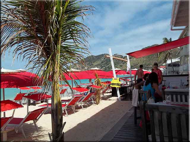 Grand Case has a few more restaurants doing lunch and beach this year, including LOVE in the old Chez Martine location. Despite, or possibly because of all these available locations, things were pretty quiet everywhere. The busiest appeared to be Rainbow.